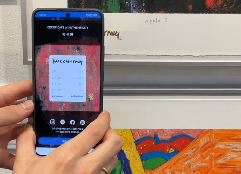 조폐공사가 이번 아트쇼에서 선보인 핵심 기술은 AI 기반 디지털 워터마크다. 작품 이미지에 눈에 보이지 않는 암호화 패턴을 삽입하고, 전용 앱으로 스캔하면 실시간으로 정품 여부를 확인할 수 있다.