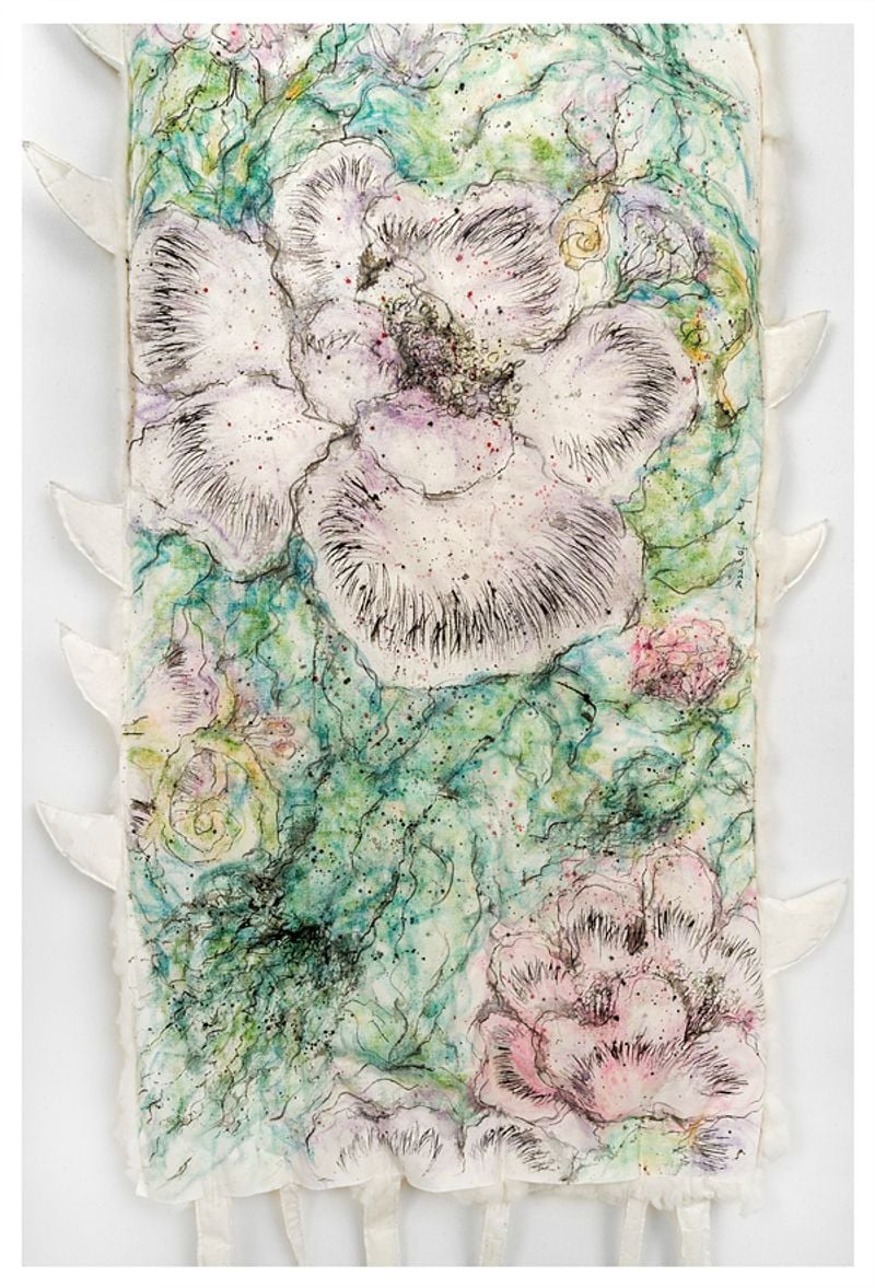 작가가 주로 사용하는 재료는 이불의 목화솜이며, 반복적으로 사용되는 재생솜, 배접 광목천, 그리고 재봉틀을 사용하여 찢어지고 어긋난 조각들을 꿰메고, 덧대고 단단하게 이어 붙이는 방법으로 작업을 한다.