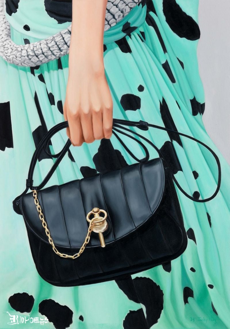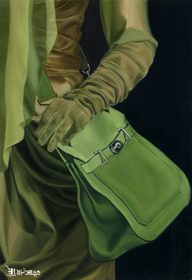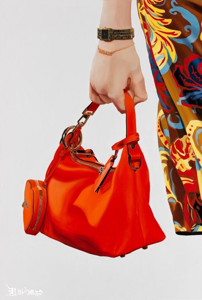 전시장에 들어서자 가장 먼저 눈에 들어온 것은 한 여성의 손에 들린 오렌지색 핸드백을 묘사한 작품이었다. 금빛 시계와 팔찌, 원색의 패턴이 강렬한 옷, 그리고 그 모든 요소를 감싸는 생생한 붓터치. 기자는 잠시 멈춰 섰다. 이건 사진이 아니다. 회화 작품이다. 그러나 그 디테일은 사진보다 더 생생했고, 색감은 현실보다 더 따뜻했다.