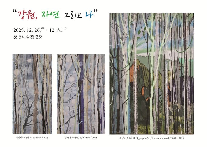 이번 개인전 전시 주제는 < 강원, 자연 그리고 나> 과거의 나에서부터 현재의 나를 강원의 자연에 담아 표현한 작품으로 2025년 신작이 대부분이며, 5회 개인전 이후 8년 만의 여는 춘천 전시이라고 한다.