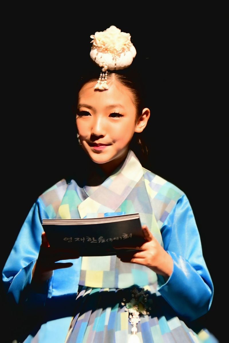 국악하는 키즈모델 김서현이 남산국악당 영재한음회에서 8일 열린 국악공연에서 사회자로 무대에 올라 관객들의 시선을 사로잡았다.