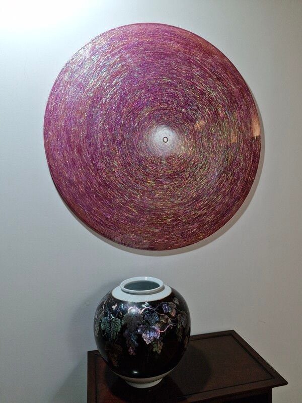 나전칠기에는 오랜 문법이 있다. 검은 옻칠 바탕 위에 자개를 얹어 빛을 극대화하는 방식이 대표적이다. 하지만 김영준은 ‘전통을 지키는 것’이 곧 ‘형식을 고수하는 것’만은 아니라고 보았다. 그는 “세상이 변했는데 꼭 검은 바탕만 고집해야 하느냐”는 문제의식에서 출발해, 색과 구성, 오브제의 스케일을 확장하며 나전칠기의 가능성을 넓혀 왔다. 익숙한 장식 공예를 넘어, 화면(혹은 오브제) 자체를 하나의 ‘작품’으로 성립시키는 시도였다.