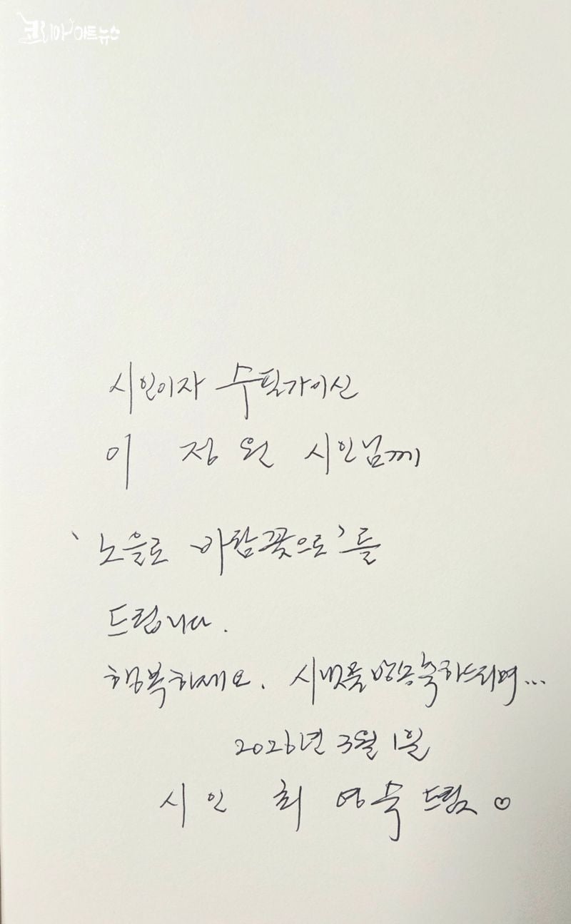『노을로 바람꽃으로』는 노을처럼 따스하고 바람꽃처럼 여린 언어로, 독자들에게 작은 등불 같은 위로를 건네는 시집이다. 삶의 고단함을 따뜻한 언어로 승화시킨 이번 작품은 한국 현대시의 또 다른 성취로 기록될 전망이다.