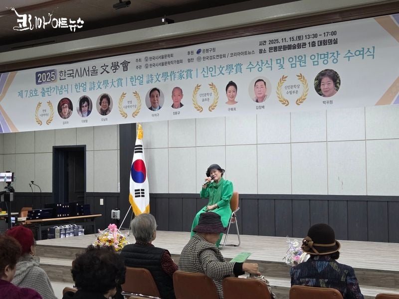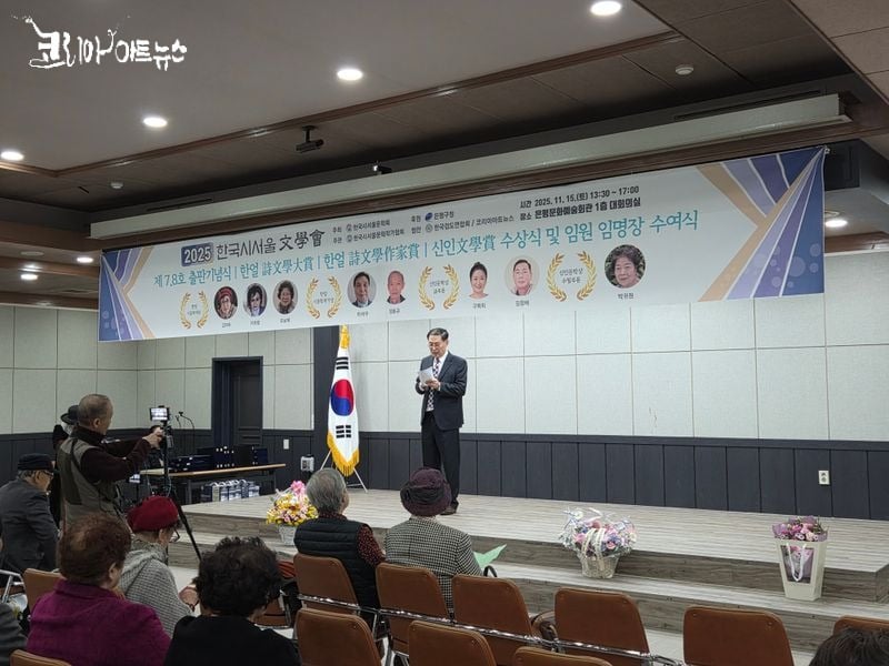 [문학=코리아아트뉴스 이청강 기자] 한국 시서울문학회(회장 이문희)는 지난 11월 15일(토) 오후 1시, 서울 은평구 은평문화예술회관 대회의실에서 종합문예지 제7·8호 출판기념식과 함께 문학상 시상식을 성대히 마쳤다.