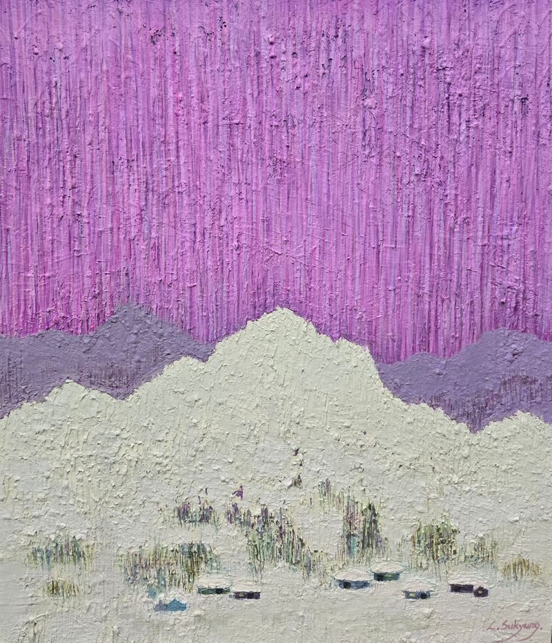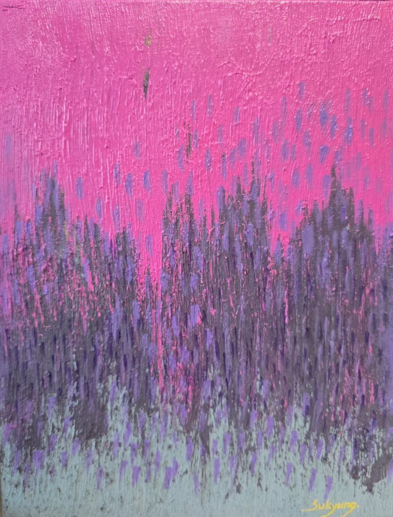 이수경 작가의 작품에는 자연을 바라보는 시선과 더불어 삶을 견뎌온 사람만이 가질 수 있는 정서적 밀도가 배어 있다. 붉고 분홍빛으로 번지는 하늘, 보랏빛 숲, 노란 들판, 하얀 꽃무리와 푸른 기운은 단순한 색채 대비를 넘어 기억의 온도와 감정의 결을 환기한다. 그 안에서 관람객은 한 작가의 개인적 서사를 마주함과 동시에, 각자의 기억 속 풍경을 떠올리게 된다. 바로 이 지점에서 이수경의 회화는 사적인 고백에 머물지 않고, 보는 이의 감정과 연결되는 공감의 회화로 확장된다.