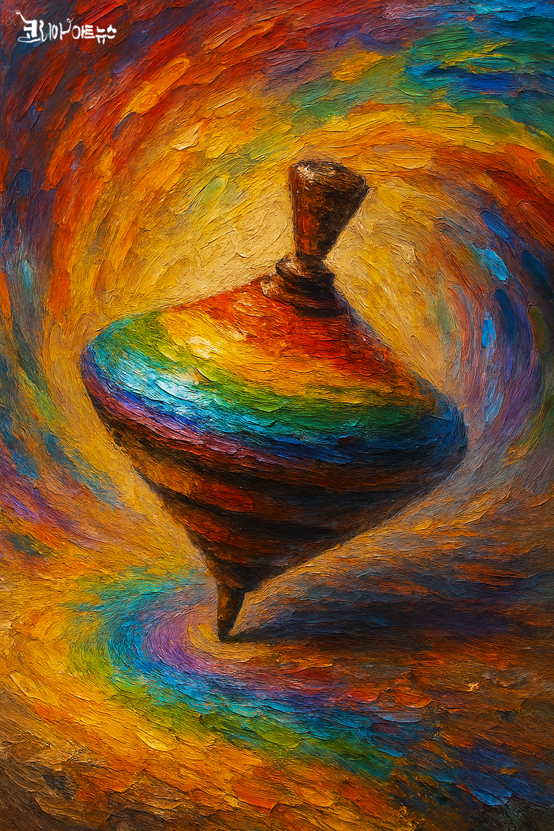 결국 「팽이」는 단순한 삶을 넘어, 고통 속에서도 흔들림 없이 서서 역사를 증언하려는 문학적 선언이자, 개인적 인내를 통해 정치적 희망을 피워 올리는 시적 상징으로 도 기능한다. 짧지만 강렬한 이 시는 과거의 상처와 현재의 모순, 그리고 미래의 가능성을 함께 품은 표현이기도 하고 지금의 ‘나’를 대변해주는 시이기도 하다.