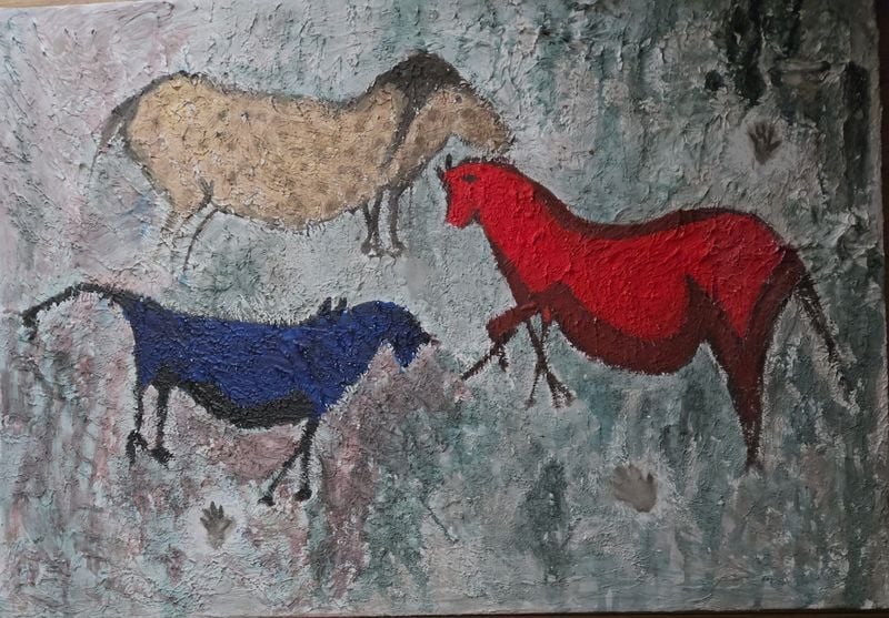 서동옥은 현대 문명의 편리함 속에서 “인간의 진정한 행복은 무엇인가”라는 질문을 던지며, 문명 이전 인류가 남긴 흔적에 주목한다. 그는 동굴 벽화와 암각화를 단순히 재현하는 것이 아니라, 인간 삶의 시원을 탐구하는 회화적 응답으로 삼는다. 거친 선, 단순화된 형태, 제한된 색채는 원시적 감각을 되살리려는 전략이며, 이는 문명화 과정에서 잃어버린 본능과 공동체적 감각을 다시 묻는 행위다.