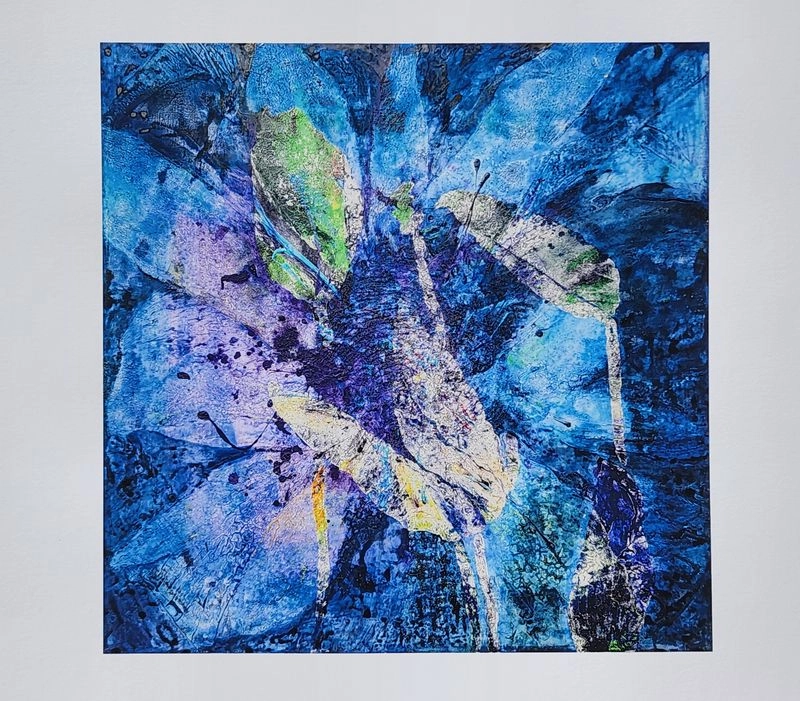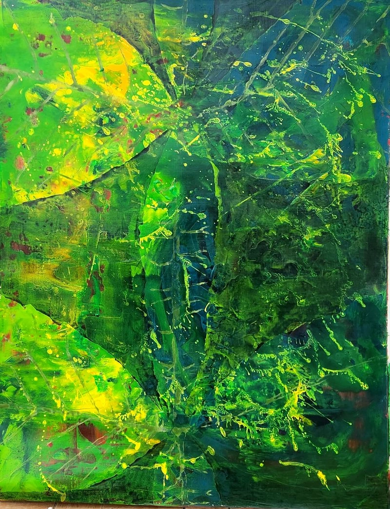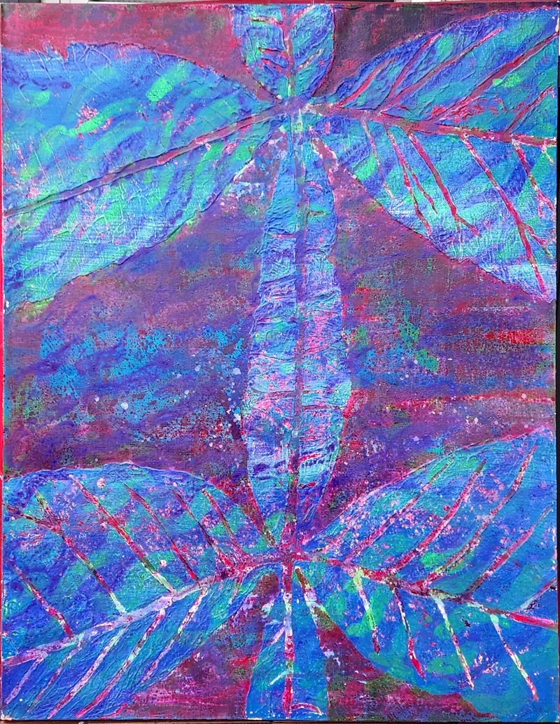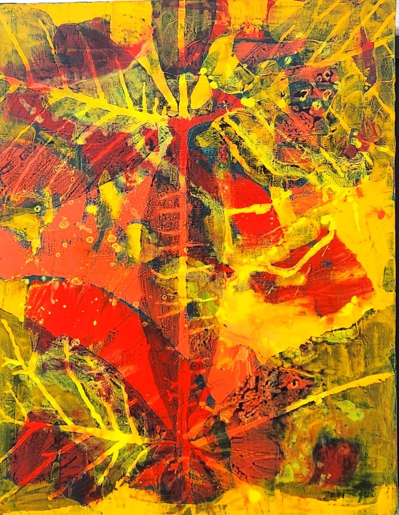 특히 작품에는 블루, 레드, 옐로우 등 강렬하면서도 깊이 있는 색채가 두드러진다. 색은 단순한 장식적 요소가 아니라 자연의 생장, 감정의 진폭, 내면의 울림을 드러내는 조형 언어로 작동한다. 잎맥을 연상시키는 선들과 번짐, 중층적 마티에르는 화면에 리듬과 긴장감을 부여하며, 관람객으로 하여금 자연의 미시적 구조와 내면의 풍경을 동시에 마주하게 한다.