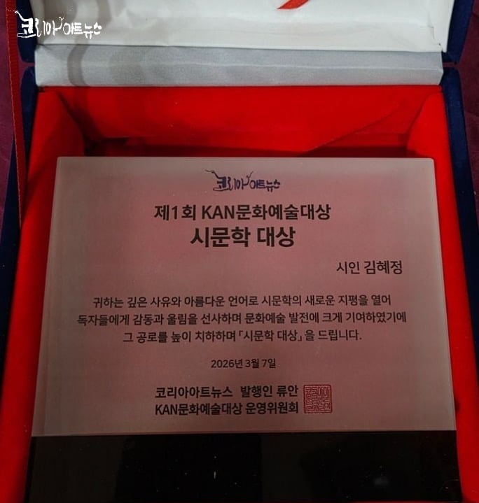 [KAN] 김혜정 시인, 제1회 KAN문화예술대상 ‘시문학대상’ 수상