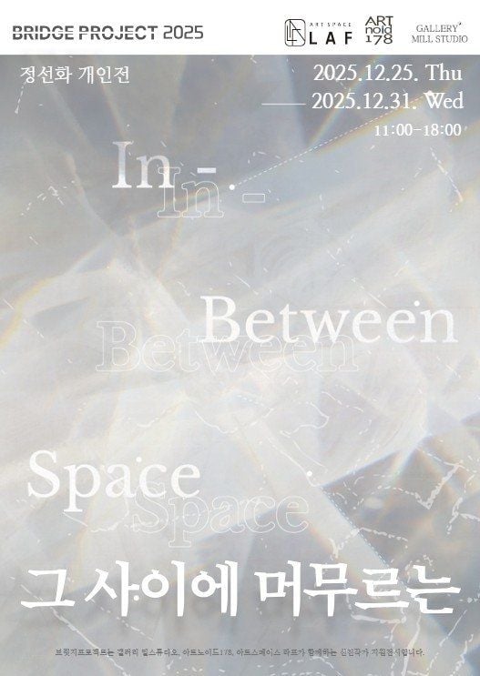 서울 중구 다산로에 위치한 갤러리 밀스튜디오에서 오는 12월 25일부터 31일까지 신진작가 지원전시 ‘Bridge Project 2025’의 일환으로 정선화 작가의 개인전 《그 사이에 머무르는-in-between space》가 열린다.