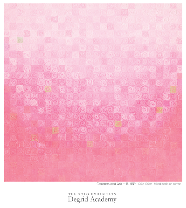 이번 전시의 대표작 중 하나인 <Deconstructed Grid- 꽃, 봄꽃>은 수줍은 소녀 같은 봄꽃의 느낌을 그리드에 고스란히 담아낸 대작이다. 밑작업을 입체적으로 겹겹이 쌓아 만든 후 이를 다시 조각처럼 깎아내서 완성한 이 작품은, 캔버스 위에 구현된 조각적 회화의 진수를 보여준다.