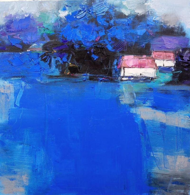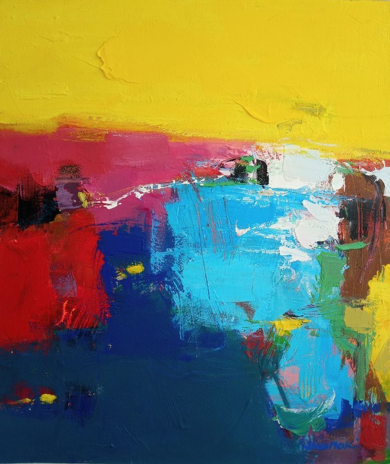 한편 남서목 작가의 또 다른 축은 자연을 바탕으로 한 추상적 풍경이다. 작가는 “사물의 밑베이스는 자연”이라는 인식에서 출발해, 자연의 오묘한 이치를 발견하고 여기에 상상력을 접목시켜 사물의 변형을 시도한다고 말한다. ‘Blue hill’과 ‘호수가 있는 풍경’에서 드러나는 깊고 넓은 색감은 단순한 풍경의 재현이 아니라, 자연에서 길어 올린 감각과 정서를 다시 화면 위에 생명력 있게 주입한 결과다. 푸른 면과 노란 빛, 붉은 색의 충돌과 번짐은 풍경을 넘어 감정의 지형으로 확장되며, 관람객 각자에게 다른 기억과 사유를 불러낸다.