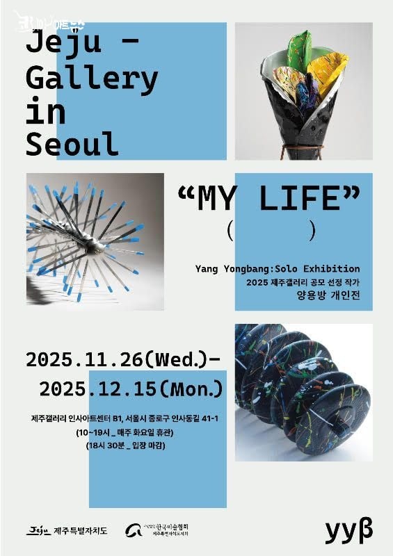 서울 인사동 인사아트센터 B1 제주갤러리에서 오는 11월 26일부터 12월 15일까지 조각가 양용방의 개인전 《MY LIFE》가 열린다. 이번 전시는 2025 제주갤러리 공모 선정의 여덟 번째 전시로, 제주특별자치도와 (사)한국미술협회 제주특별자치도지회가 주최·주관한다.