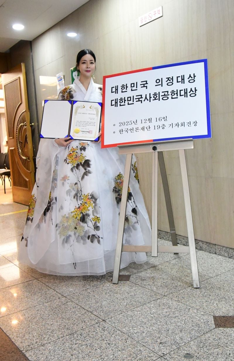 김진하 가수 겸 배우가 지난 12월 16일 서울 프레스센터에서 서울중앙방송이 주최한 2025년 대한민국 사회공헌대상을 수상했다
