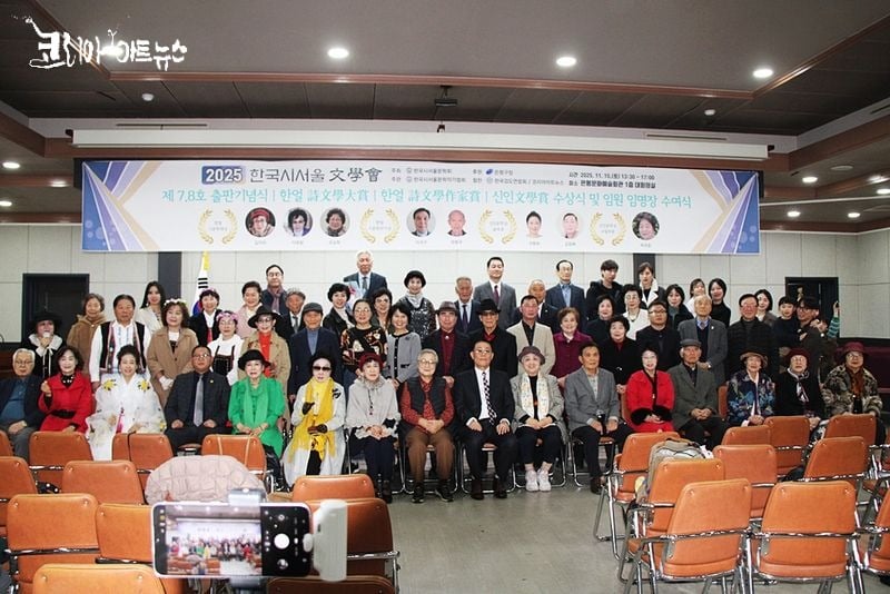 한국시서울문학회는 연말을 앞두고 지난 11월 15일 오후 1시 30분, 은평문화예술회관 1층 대회의실에서 제 7,8호 종합문예지 한국 시서울문학 출판기념식 및 한얼시문학대상-한얼시문학작가상-신인문학상 시상식을 성황리 마침으로 2025년 모든 일정을 소화했다.