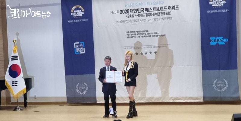 가수이자 모델로 활동 중인 임시연이 지난 11월 29일(토) 오후 2시, 서울 영등포구 국회의원회관 대회의실에서 개최된 ‘2025 대한민국 베스트브랜드 어워즈’에서 글로벌 트렌드 부문 대상을 수상했다.