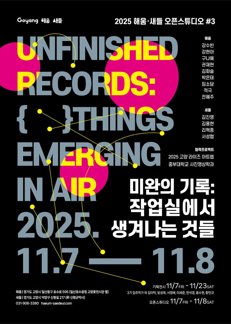 《미완의 기록: 작업실에서 생겨나는 것들》이라는 주제로 진행되는 이번 행사는 작품이 완성되기까지의 창작 ‘과정’과 그 주변에서 일어나는 현상을 공유하는 자리다.