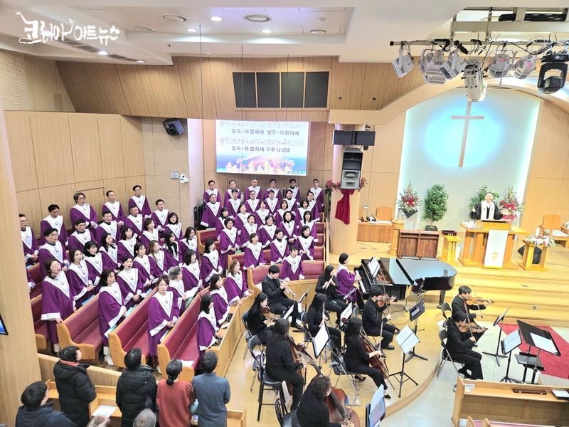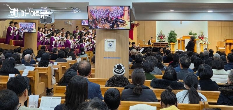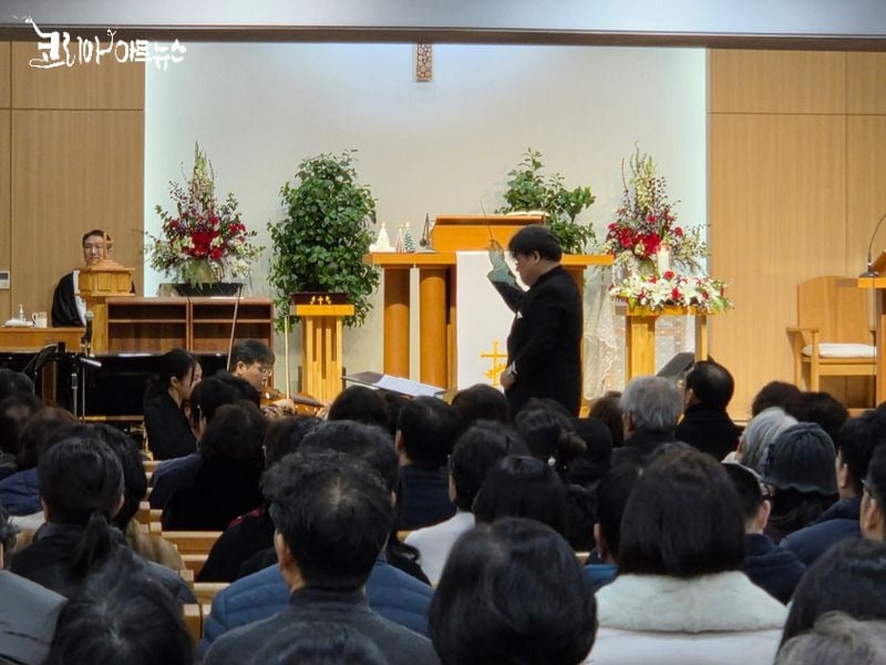 [음악=코리아아트뉴스 이청강 기자] 지난 25일, 경기도 고양시 소재 대한예수교장로회 승리교회(위임목사 박규성) 성탄절 예배 시간에 할렐루야 찬양대(지휘 민관준, 오르간 이경화, 피아노 이은실)는 승리앙상블 오케스트라 연주로 성탄절 칸타타를 공연했다.