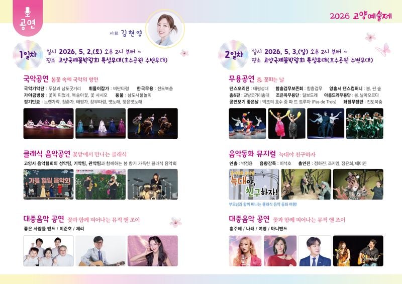 [고양=코리아아트뉴스 이청강 기자] 고양특례시(시장 이동환)의 봄을 수놓는 지역 예술 축제 ‘2026 고양예술제’가 오는 5월 3일까지 고양국제꽃박람회 특설무대와 야외 전시부스에서 개최된다.