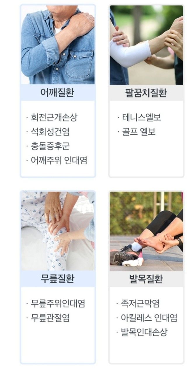 체외충격파 치료는 주로 어깨(석회화건염), 팔꿈치, 발바닥 통증에 활용된다. 특히 레저 활동이 늘어난 요즘, 등산이나 마라톤으로 인한 족저근막염 환자에게 회복에 도움을 줄 수 있다.