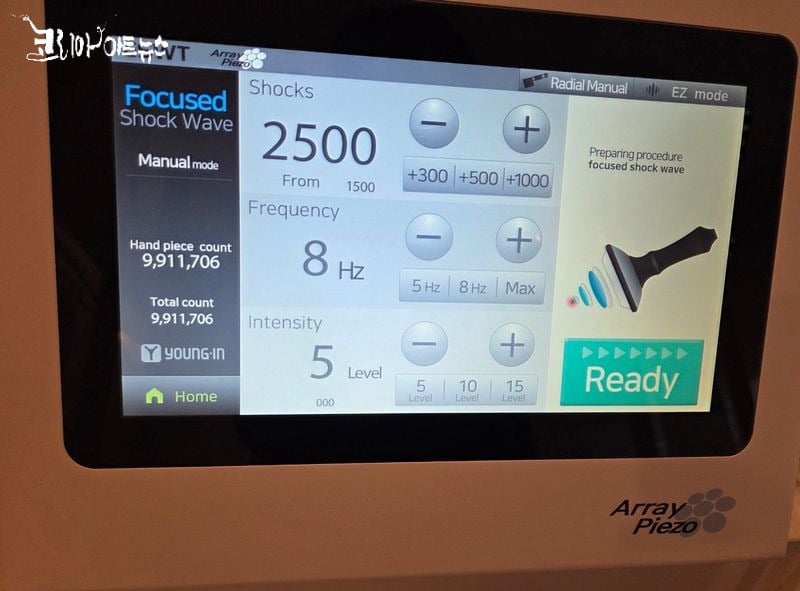 체외충격파 치료는 비급여 항목으로, 충격파 타수에 따라 비용이 달라진다.