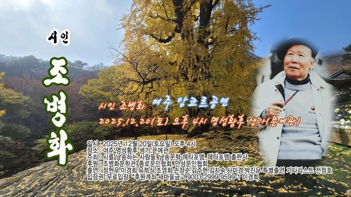 [코리아아트뉴스 손장순 기자] 깊어가는 겨울의 초입, 경기도 여주에서 문학과 음악이 어우러진 특별한 무대가 다시 열린다. 지난 11월 서울 동숭동 한예극작에서 큰 감동 속에 막을 내렸던 ‘시인 조병화’ 시낭송 공연이 관객들의 뜨거운 성원에 힘입어 오는 12월 20일 오후 4시, 명성황후 생가 문예관에서 앙코르 공연으로 재현된다.