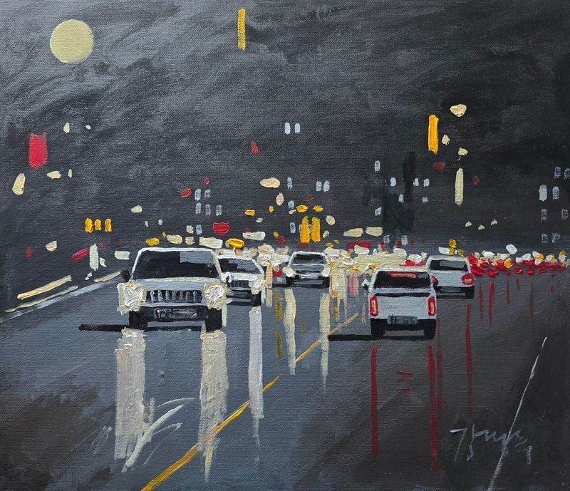 - <도시> 시리즈 (고독과 공존의 이중주): 현대인이 살아가는 삶의 터전이자 인간의 내면을 비추는 거울이다. 어둠과 밝음이 공존하는 도시의 양면성을 흑백의 강렬한 대비로 표현했다. 기하학적인 건축물의 형상 위로 덧입혀진 거친 질감은 차가운 콘크리트 숲속에서 살아가는 현대인의 고독과 역동적인 생명력을 상징한다.