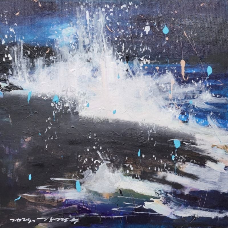 - <바다> 시리즈 (무한한 생명력의 원천): 거친 붓터치와 나이프 작업을 통해 파도의 움직임과 물결의 파동을 역동적으로 담아냈다. 깊이 있는 푸른 빛과 흰 포말의 대비는 경외심과 내면의 치유를 경험하게 하며, 끊임없이 밀려오고 나가는 파도를 통해 멈추지 않는 삶의 흐름과 인간의 굴하지 않는 의지를 표현한다.