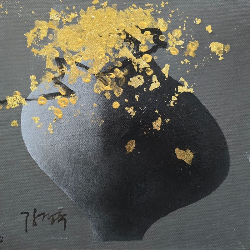 - <꽃> 시리즈 (찰나의 화려함 뒤에 숨겨진 본질): 삶의 정점에서 뿜어져 나오는 에너지의 파동을 시각화했다. 무채색의 배경 위로 피어난 금빛 혹은 원색의 꽃들은 강렬한 시각적 대비를 이룬다. 두껍게 발라진 물감의 층은 꽃잎의 생명력을 입체적으로 부각하며 율동감을 선사한다.