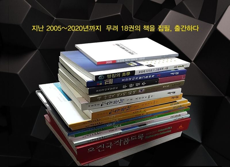 오진국 화백의 예술 여정은 한마디로 요약하기 어렵다. 그는 회화 작가이면서 동시에 저술가였고, 전시기획자였으며, 문화콘텐츠 생산자이기도 했다. 2007년부터 2022년까지 여러 권의 작품집과 저서를 펴내며 자신의 예술세계를 이론적으로도 정리해왔다. 《내 사랑 연이 되어》, 《무한질주》, 《펼침의 미학》, 《오진국 작가 대표작 100선》, 《오진국 2022 Artworks Selection》 등은 단순한 출판물이 아니라 그의 예술철학과 창작 여정이 축적된 결과물이다. 그는 편집기획과 저서 출간을 포함해 20권이 넘는 출판 작업을 이어왔다.