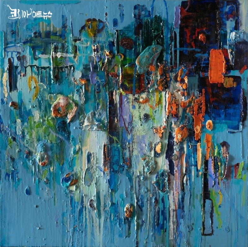 탁노의 화면은 평면에 머물지 않는다. 두터운 물감의 퇴적과 흘러내린 자국, 마른 층과 젖은 층의 충돌이 층위를 만들며, 색은 고정된 면이 아니라 감각이 출렁이는 ‘장(場)’으로 변한다. 색과 색 사이의 여백은 공백이 아니라 기운이 순환하는 공간으로 읽힌다. 시간의 지층처럼 쌓인 물감층은 작품을 단일 순간의 산물이 아니라 시간을 포함한 존재로 확장시킨다.