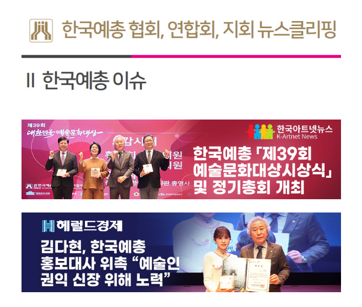 한국아트넷뉴스, 한국예총 ‘공식파트너 인터넷신문’ 첫 성과… ‘뉴스클리핑 2월 4주차’에 첫 게재
