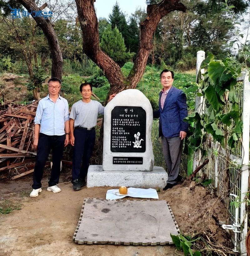 [문학=코리아아트뉴스 이청강 기자] 강구성 시인은 지난 10월 1일, 경기도 여주시 세종대왕면 소재 한국문예작가회•한국문학신문 연수원 낙락장송(落落長松) 소나무 아래 시비(詩碑)를 건립했다.