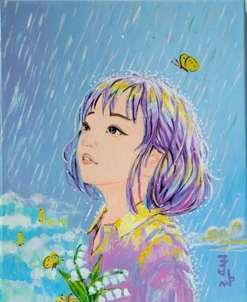 이러한 존재들은 단순한 장식적 요소가 아니라, 작가가 말하는 기쁨과 위로, 교감의 언어를 시각적으로 풀어내는 상징들이다. 특히 이번 작업들에서는 소녀의 표정, 꽃의 리듬, 화사한 색감이 어우러지며 ‘축복’이라는 감정을 보다 직접적이고도 사랑스럽게 전달한다.