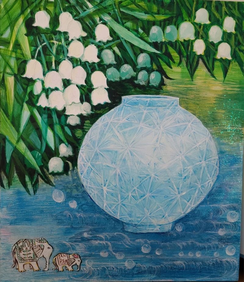 이번 페어에서 박삼화 작가의 작업은 그 고유한 감성을 더욱 또렷하게 보여준다. 작가의 작품에는 은방울꽃인 ‘May Lily’가 반복적으로 등장하고, 노랑나비와 노랑새는 마치 소울메이트처럼 작품 주변을 맴돈다.