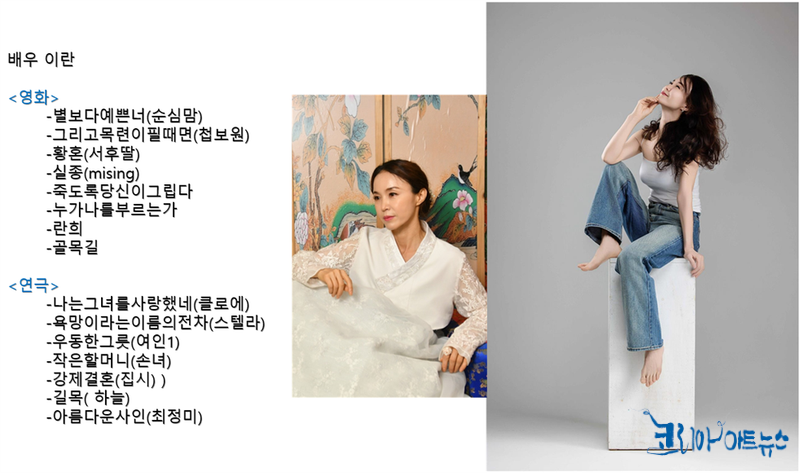 이란희는 단편영화 〈실종〉에서 치매 아내 ‘란희’ 역을 맡아 섬세하고 진정성 있는 연기로 주목받은 바 있다. 이번 무대에서도 그녀 특유의 감성과 표현력으로 전통예술의 아름다움을 빛내며 관객들의 마음에 깊은 울림을 남겼다.