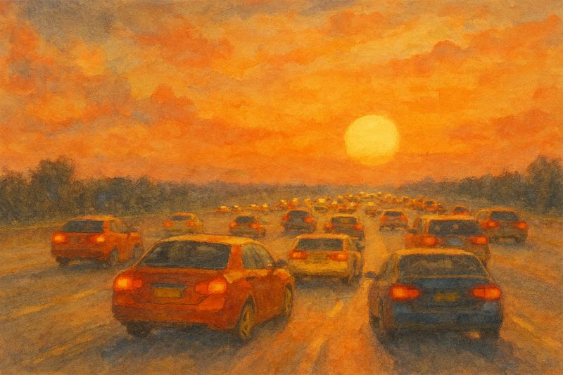 2. 로 넘어오면 시선은 수행의 산중에서 일상의 저녁으로 이동한다. 그러나 장엄함은 사라지지 않는다. “저물 무렵 저자에도 장엄한 꽃이 핀다”에서 꽃은 더 이상 자연이나 초월의 이미지에만 머물지 않는다. 퇴근길의 도로, “집을 향해 포복하는 차들의 긴 행렬” 속에서도 장엄한 꽃은 핀다. 포복이라는 단어는 1수의 오체투지를 다시 호출하며, 일상 노동 역시 또 다른 형태의 수행임을 암시한다. “저저이 강을 타넘는 누 떼인 양 뜨겁다” 는 비유는, 개별 차량들이 하나의 생명 군락처럼 움직이며 하루의 체온을 그대로 안고 흐르는 장면을 생생하게 드러낸다.