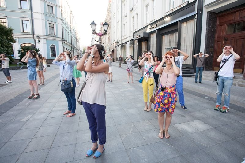 - 헤드폰 음성 안내에 따라 도시를 새롭게 걷는 참여형 퍼포먼스